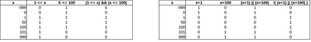 注意:就像在數學中一樣,中括號用於指示運算順序,例如,在右圖表最右一個表達式中 !((x<1)||(x>100)) ,將首先判斷’x <1’,然後是’x> 100’,然後是’||’,最後是’!’ 。