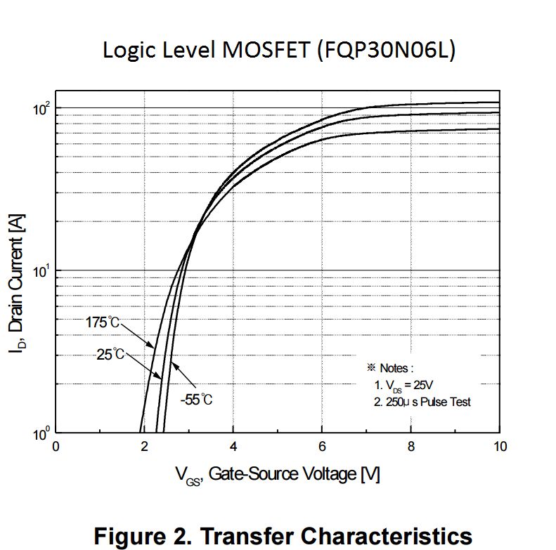 可以將它們與3.3V信號一起使用,但是最大汲極電流會低得多。(由於在閘極電壓和汲極電流之間的關係不是線性的,所以可以在圖中看到。)