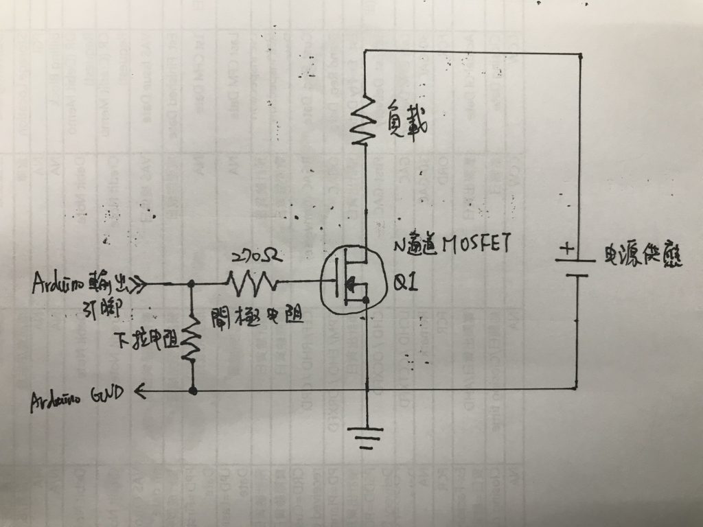 由於它非常敏感,因此建議在MOSFET的閘極上使用下拉電阻(gate bleeder),以防止產生電場並導通MOSFET。