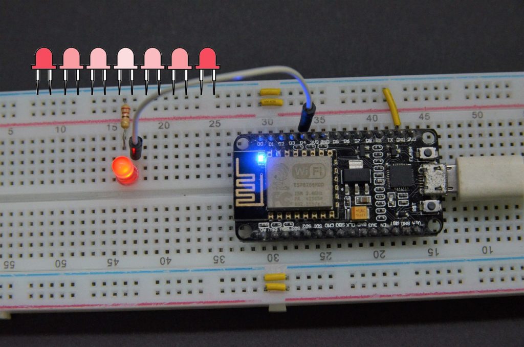 本課程介紹如何使用Arduino IDE通過ESP8266 NodeMCU生成PWM信號。舉例來說,我們將通過隨時間改變工作週期來使LED亮度變暗變亮。
