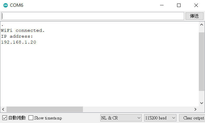 按下ESP8266 RESET按鈕,它將在序列監視器上輸出ESP IP地址