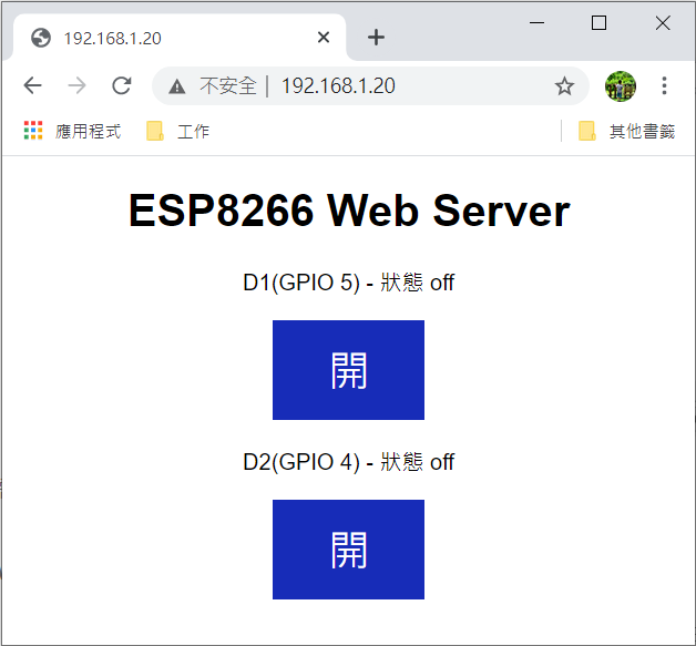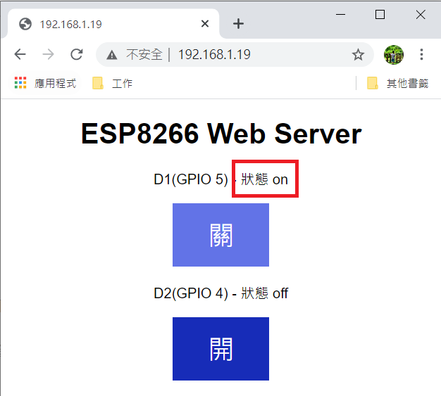 然後,根據GPIO的當前狀態,顯示開或關按鈕。