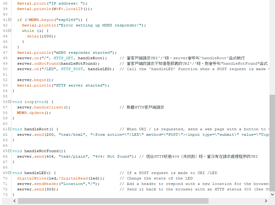 接著,我們開始使用監聽HTTP請求 server.begin 。