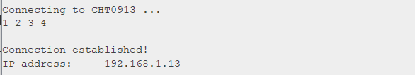 現在轉到電腦並打開一個terminal:在Windows上,搜索“命令提示符”。可以使用快捷方式:在Windows上,點擊  + R,輸入“ cmd”. 接下來,輸入 ping ,然後是您在”序列埠”監控視窗中收到的IP地址,按下Enter。輸出應如下所示: