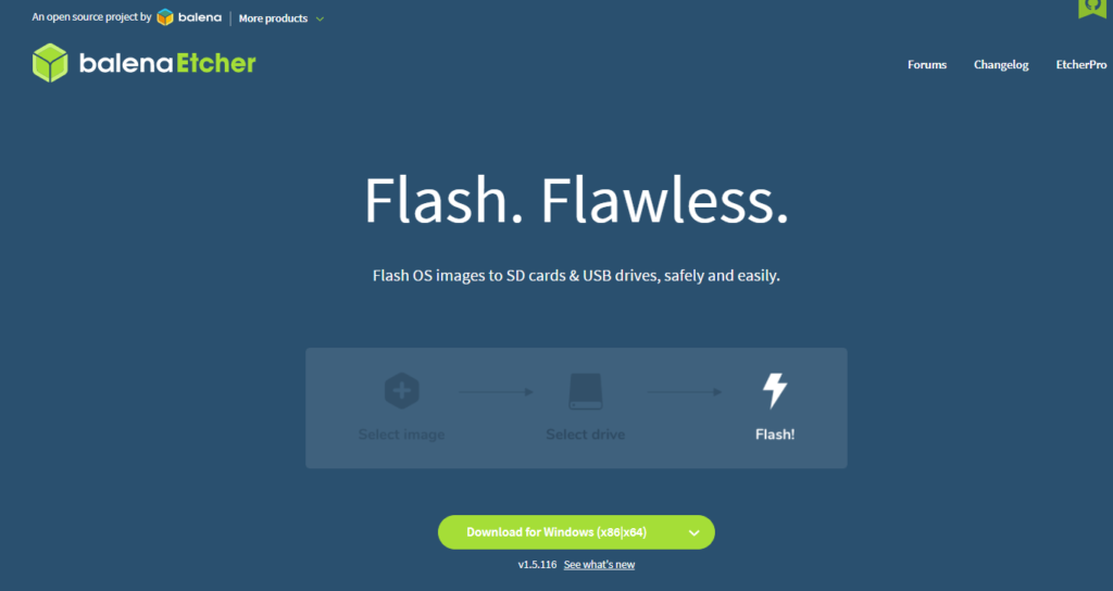 1.下載Etcher –為您的作業系統選擇正確的作業系統。然後,安裝它。