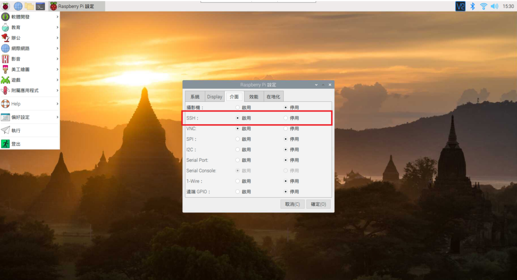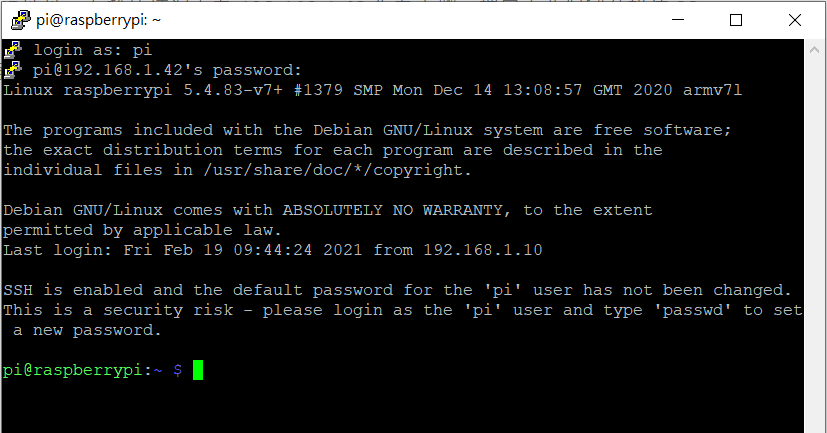 注意:用戶名= pi和密碼= raspberry是Raspberry Pi作業系統預設值