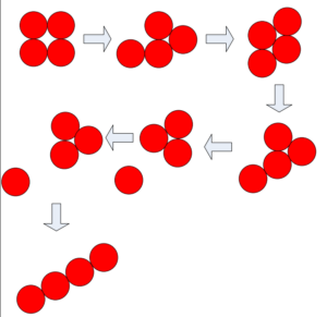 遊戲規則:一次只能移動一個銅板,每次移動的銅板一定要相鄰兩個銅板;最後四個銅板要成一直線才算成功。